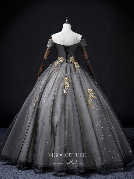 Black Lace Applique Quinceanera Dresses Off the Shoulder Princess Dresses 21363