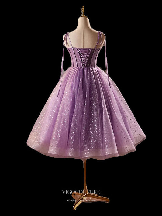 Lavender Starry Tulle Hoco 2024 Spaghetti Strap Back to School Dress hc351