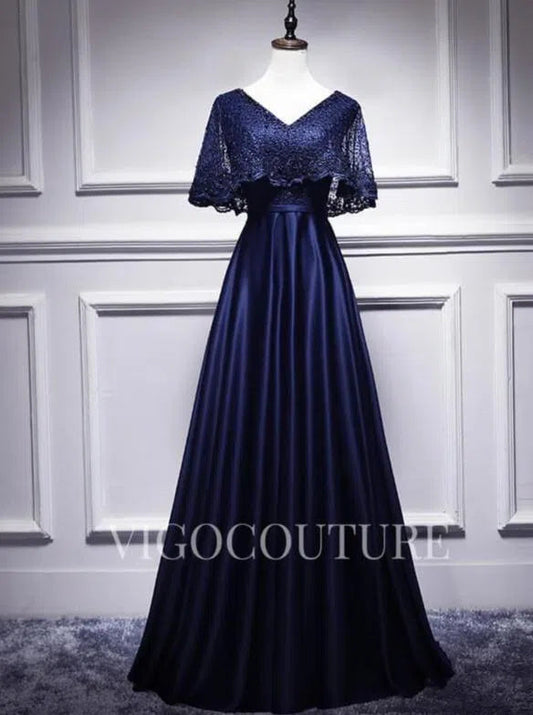 A-line Satin Evening Dress Lace V-Neck Prom Dress 20278