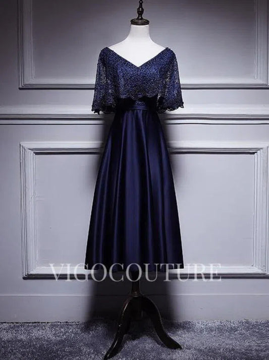 A-line Satin Evening Dress Mid-length Lace V-Neck Prom Dress 20278