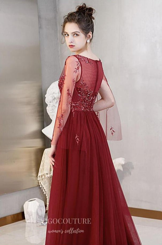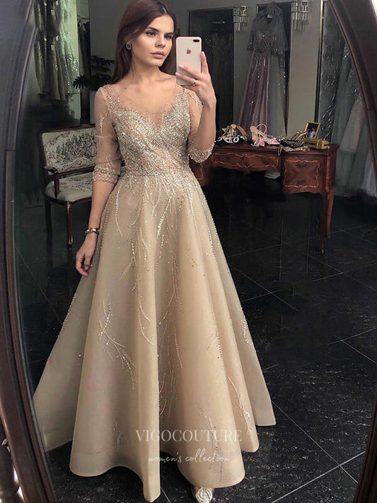 Beaded Long Sleeve Prom Dresses Boat Neck Evening Dresses 21304