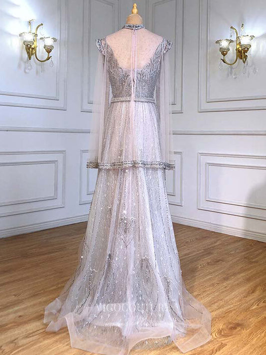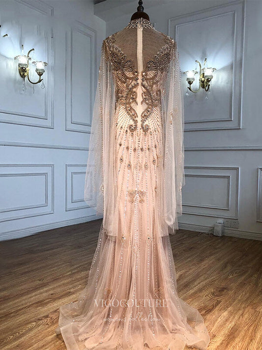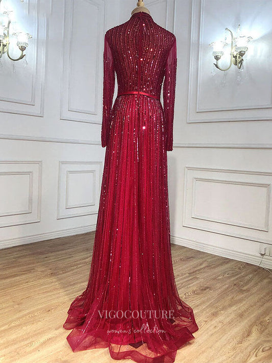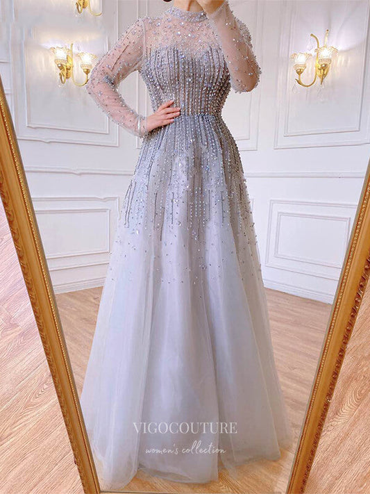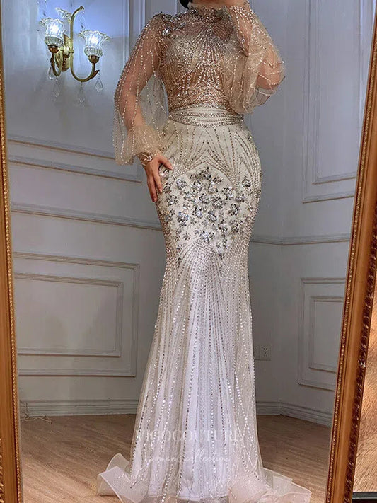 Beaded Long Sleeve Prom Dresses High Neck Formal Dresses 21261