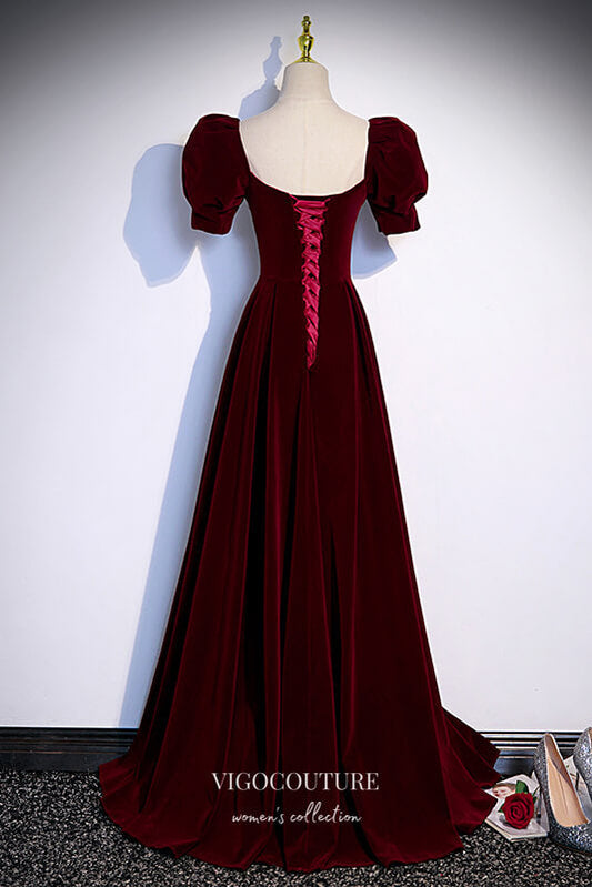 Burgundy Velvet Formal Dress A-Line Sweetheart Neck Prom Dresses 21648