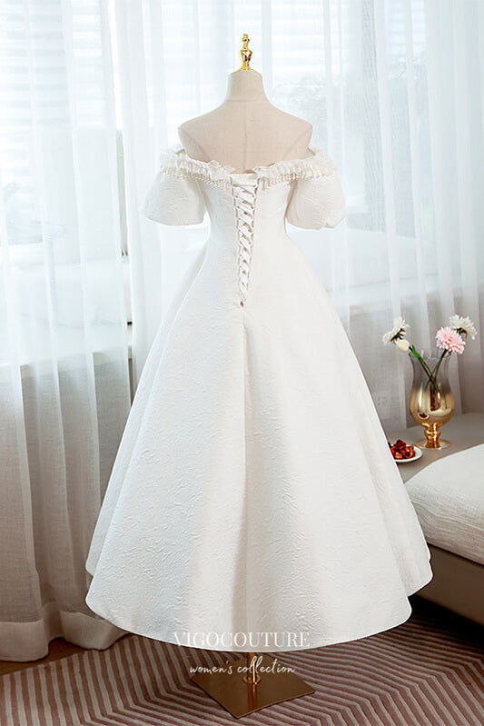 Jacquard Satin Mid Length Prom Dresses Off the Shoulder Formal Dress 21640