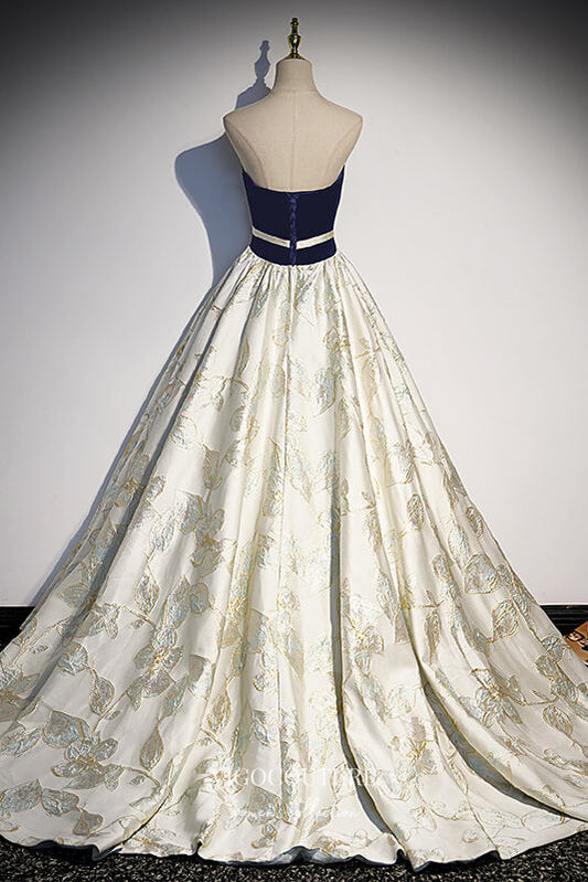 Jacquard Satin Prom Dresses Strapless Bow Tie Formal Dresses 21646