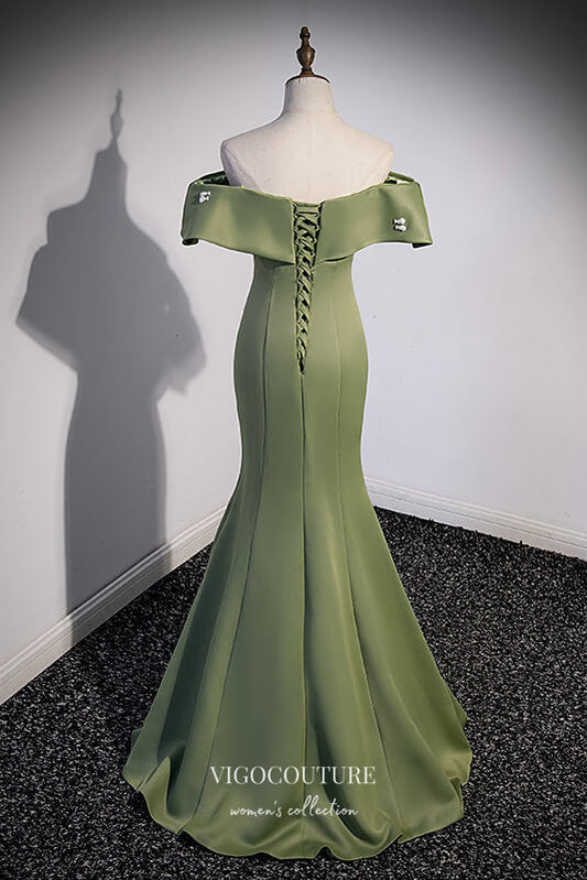 Olive Green Satin Formal Dress Mermaid Off the Shoulder Prom Dresses 21642