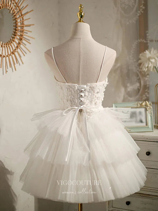 Tiered Spaghetti Strap Homecoming Dresses Beaded Short Prom Dresses hc131