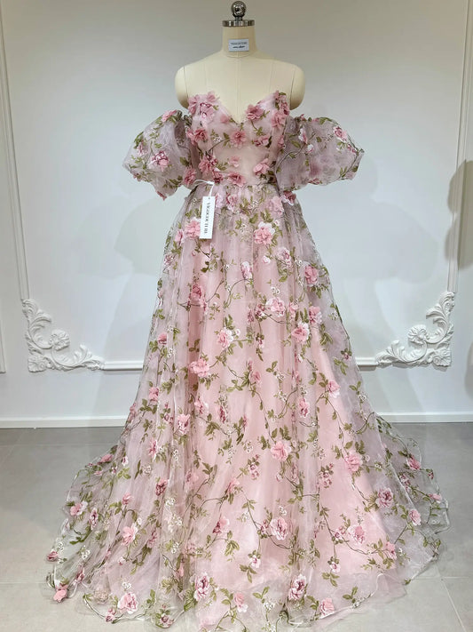 Julie Gown - Pink Strapless Floral Dress