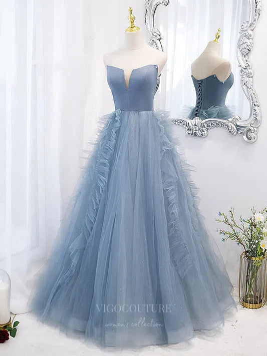 Light Blue Removable Sleeve Tulle Prom Dress 20881