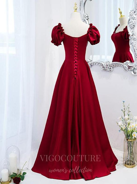 Red Puffed Sleeve Prom Dress 2022 Sweetheart Neck Formal Dress 20505