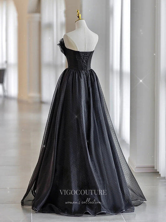 Vestidos de fiesta de tul negro sin tirantes 21048