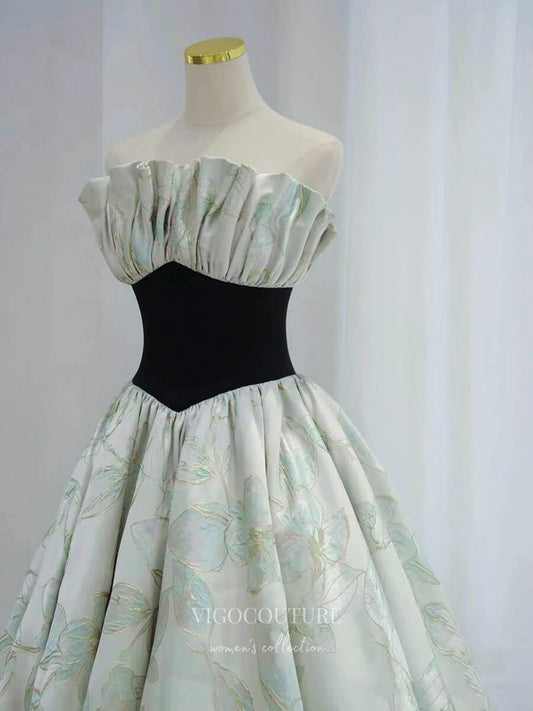 Vestidos de fiesta de jacquard verde claro, vestidos formales sin tirantes 21023