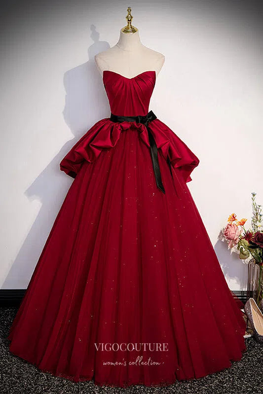Vestido de fiesta rojo sin tirantes y escalonado 20641