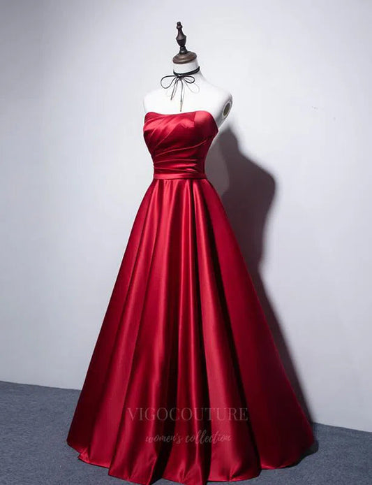 Vestidos de fiesta rosas brillantes sin tirantes y con bolsillos GH031