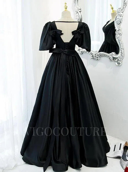 Vestido de fiesta de satén con mangas abullonadas y escote en V 2022 20346