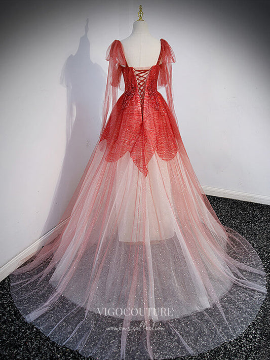 Vestidos de fiesta de tul brillante con mangas desmontables 21327