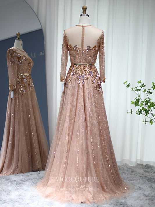 Vestido de fiesta con cuentas rosas, manga larga, estilo años 20, vestido de noche 22135
