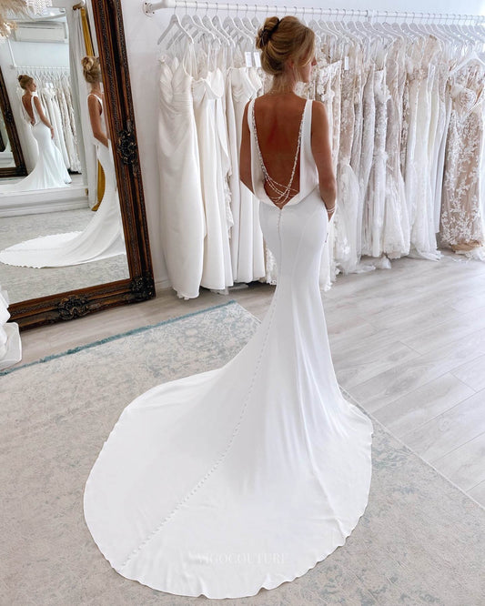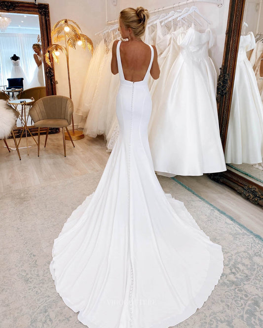 Vestido de novia color marfil con escote en V, corte sirena y espalda descubierta W0109
