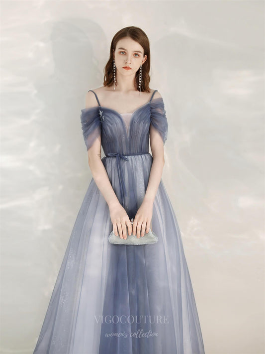 Vestidos de fiesta de tul azul sin tirantes 2024 con escote cruzado plisado 24254