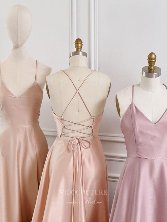Vestido de fiesta con tirantes finos color rubor, espalda de corsé de satén, vestido de noche 21771