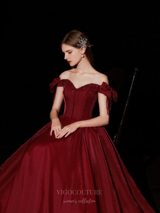 Vestido de fiesta burdeos con hombros descubiertos, vestido de noche de tul de corte A 21780