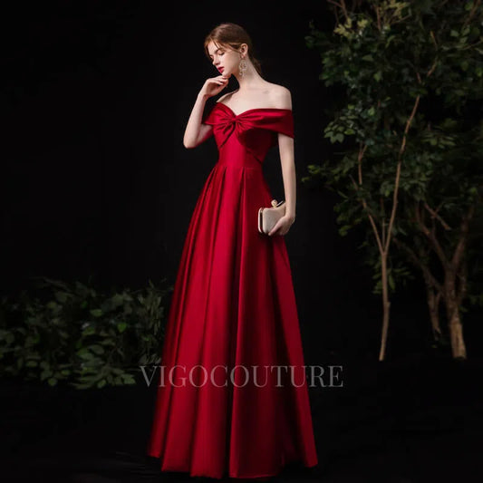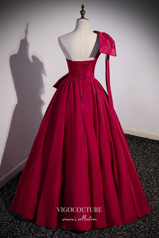 Vestido formal burdeos de un solo hombro, corte A, con lazo, para fiesta 21667