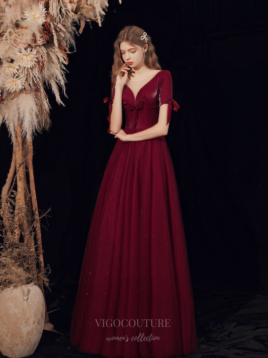 Vestido de fiesta burdeos con escote en V pronunciado 20726