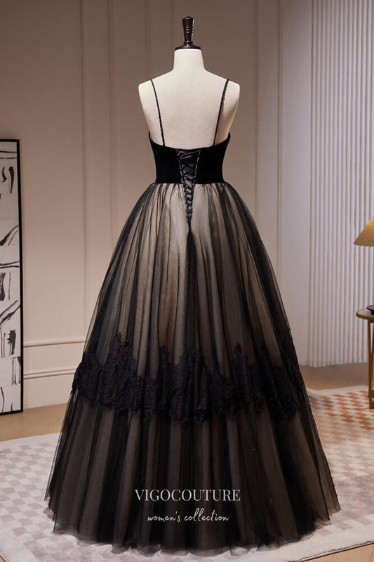 Elegante vestido de fiesta de encaje negro con tirantes finos, vestido de noche 22389