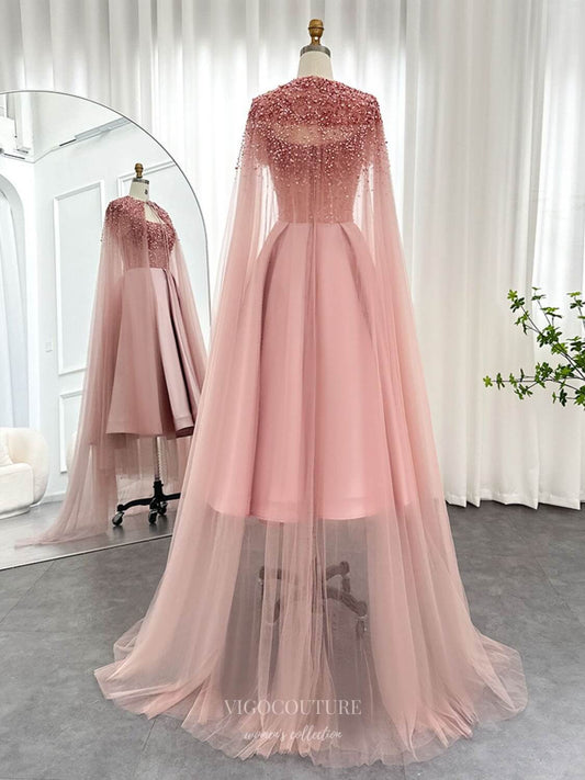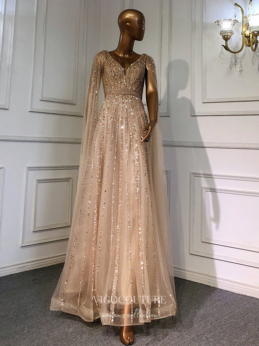 Vestidos de fiesta de lujo con cuentas y mangas estilo capa, escote en V, 22082