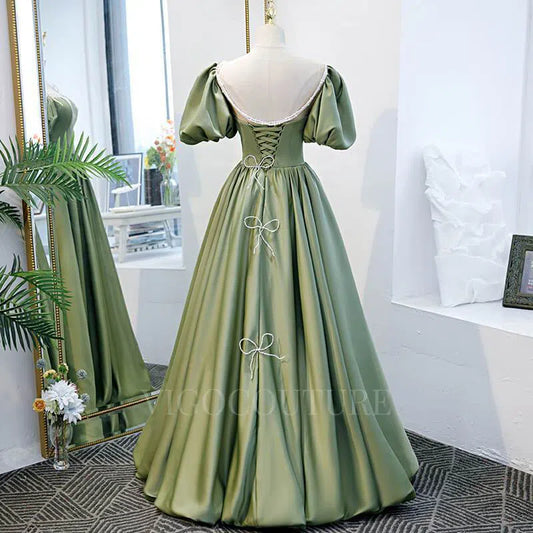 Vestido formal verde oliva con mangas abullonadas extraíbles, vestidos de fiesta 21659
