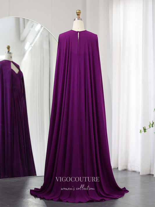 Vestido de fiesta de gasa morada con mangas estilo capa para madre de la novia 24441