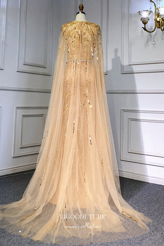Vestido formal de sirena con capa extraíble y cuentas, vestido de fiesta 21617