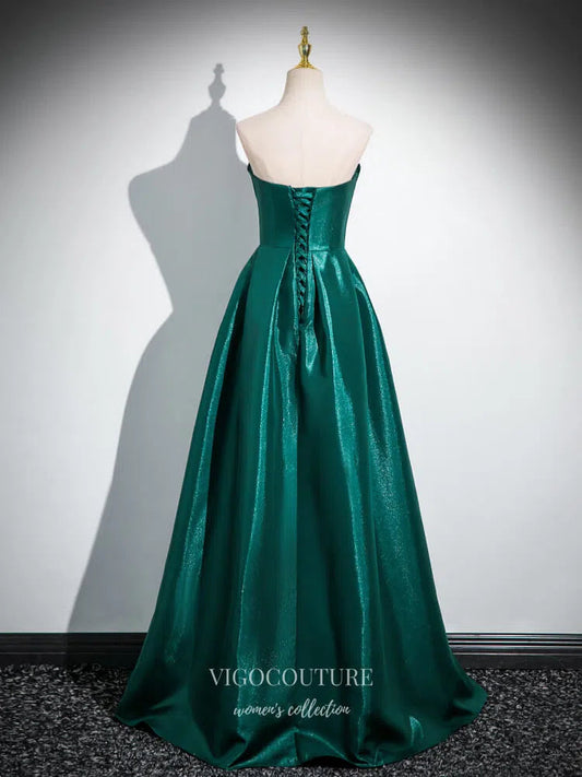 Vestidos de fiesta económicos sin tirantes con estampado floral verde 2025, vestido formal de satén 25068