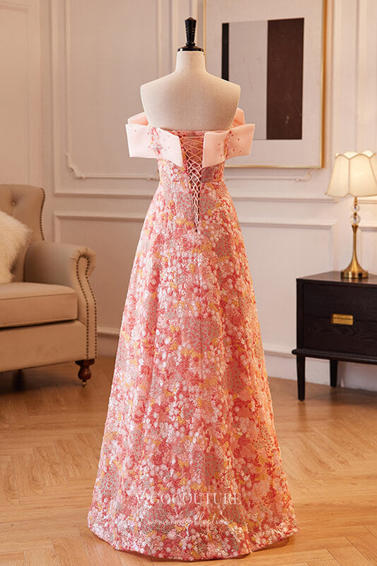 Vestido de fiesta con apliques de encaje y cuentas rosas, hombros descubiertos 22269