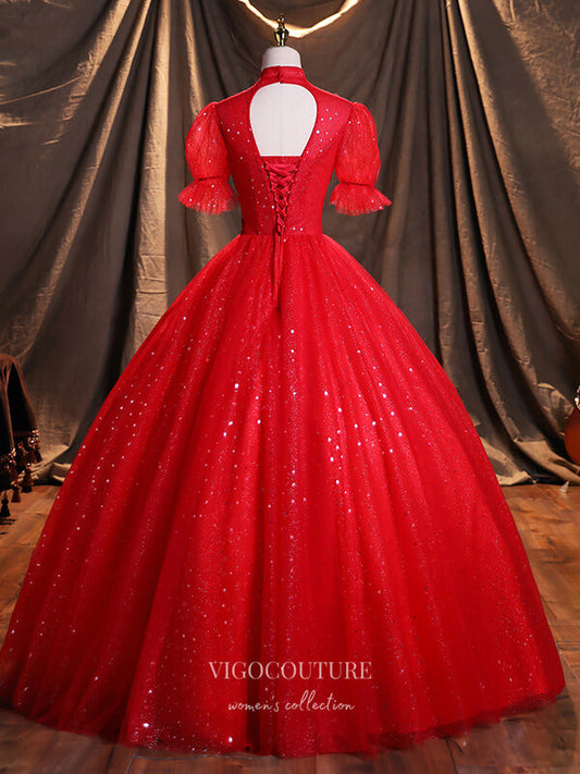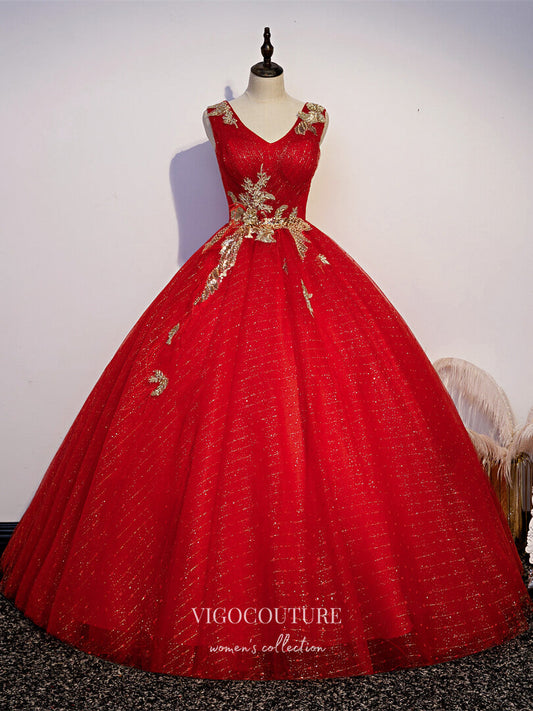 Vestidos de quinceañera de tul rojo brillante con apliques de encaje y cuentas, vestidos de dulces 16 21391