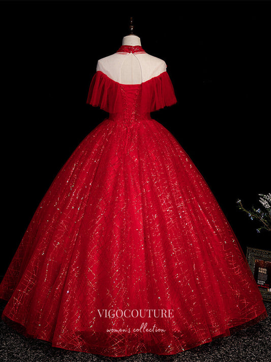 Vestidos de quinceañera con capa roja desmontable y apliques de encaje estilo princesa 21434
