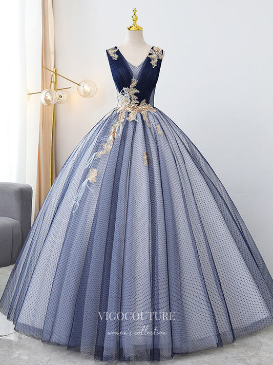 Vestidos de quinceañera de tul azul brillante con apliques de encaje y princesa 21416