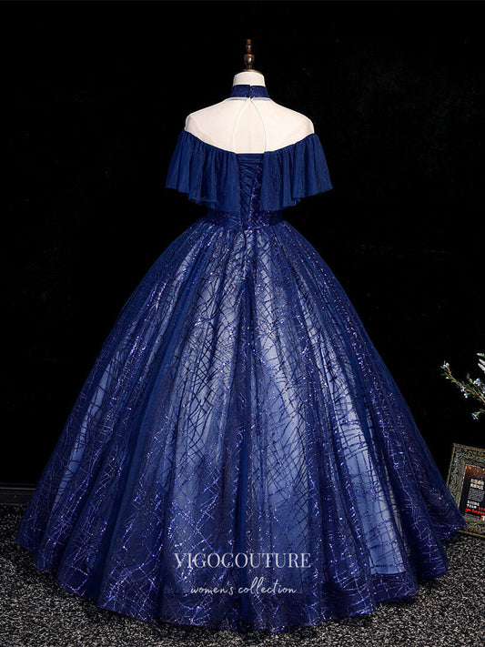 Vestidos de quinceañera con apliques de encaje azul y capa extraíble para dulces 16 21394