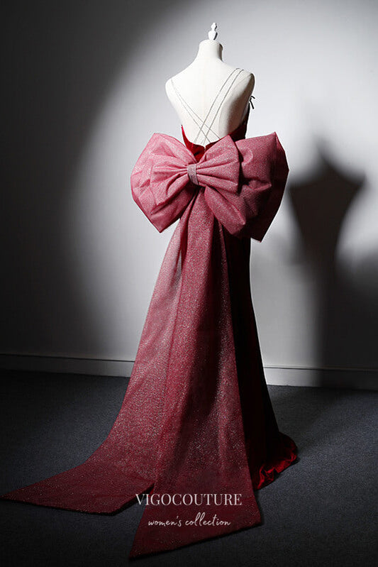 Vestidos de fiesta de sirena en terciopelo burdeos con lazo 22366