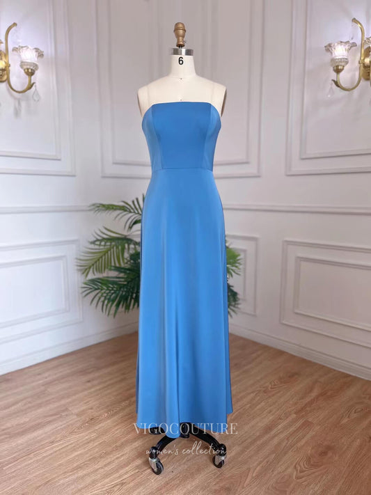 Vestido de fiesta de satén azul claro con lazo, escote palabra de honor, abertura y corpiño de cuentas – 25167