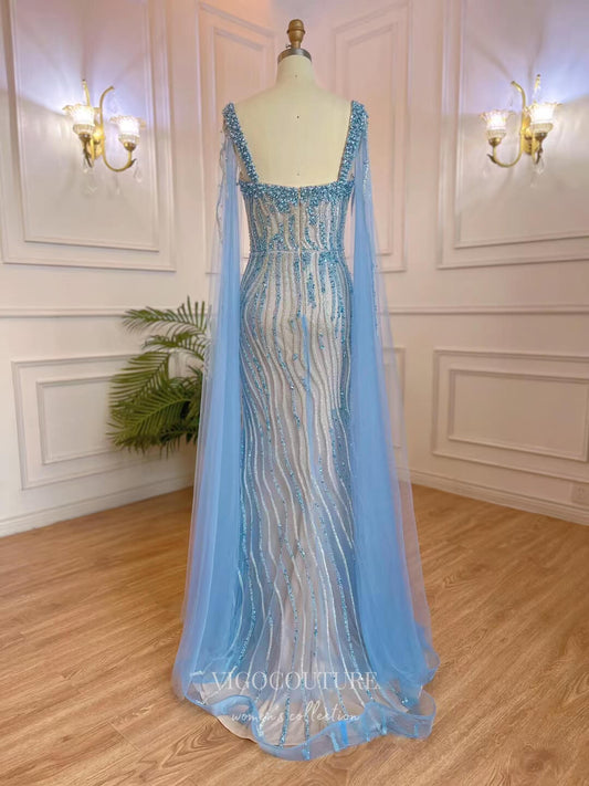 Vestidos de fiesta con cuentas en azul claro, vestidos de noche estilo sirena 20762