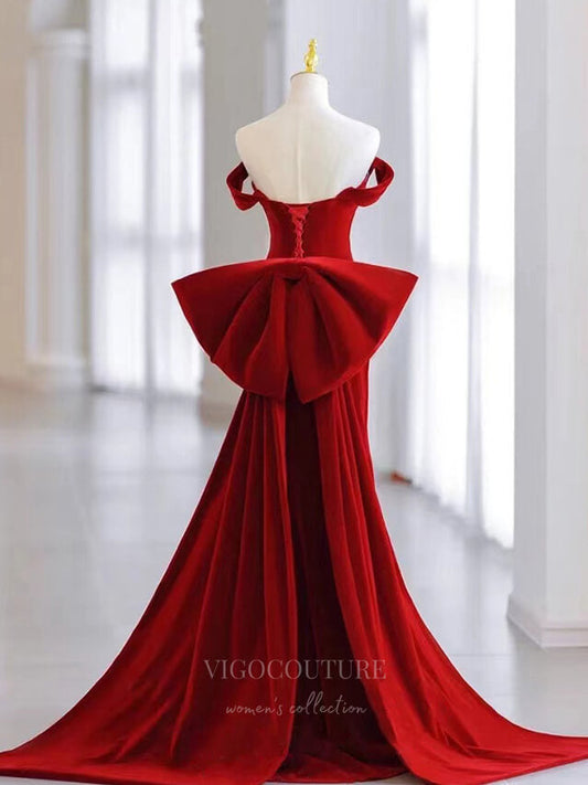 Vestido de fiesta de terciopelo rojo estilo sirena con hombros descubiertos 21003