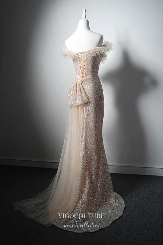 Vestidos de fiesta de sirena con lentejuelas color champán brillante 22363