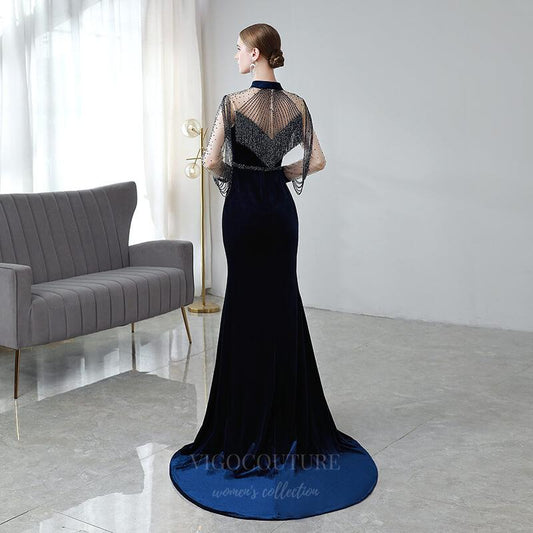 Vestido de fiesta de terciopelo con cordón y cuentas 20152