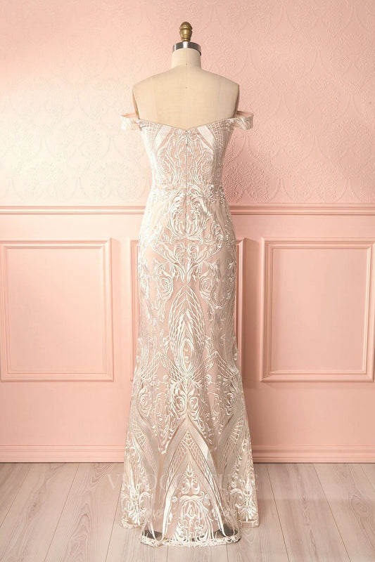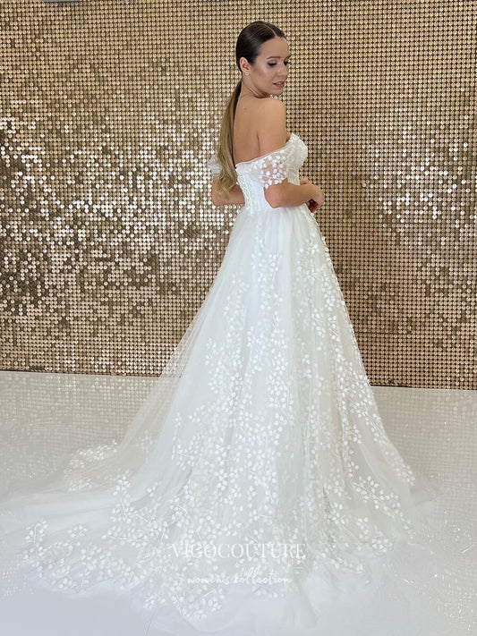 Vestidos de novia con apliques de encaje y hombros descubiertos W0052