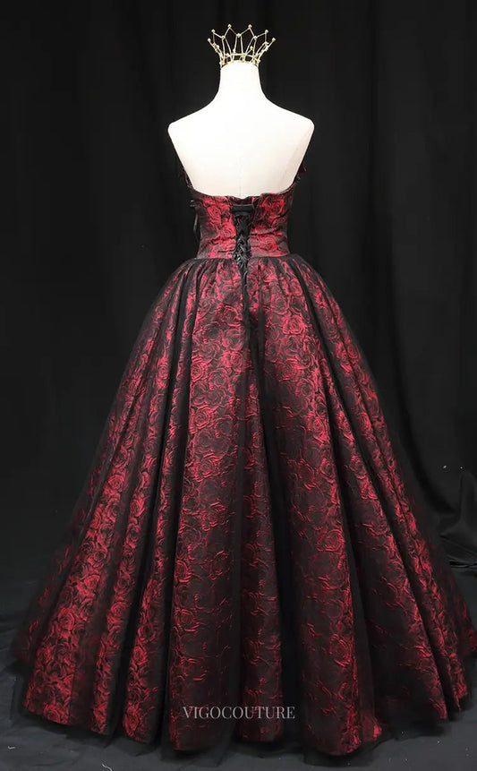 Vestidos de fiesta con estampado floral en jacquard burdeos y escote corazón, vestidos de quinceañera sin tirantes BG019