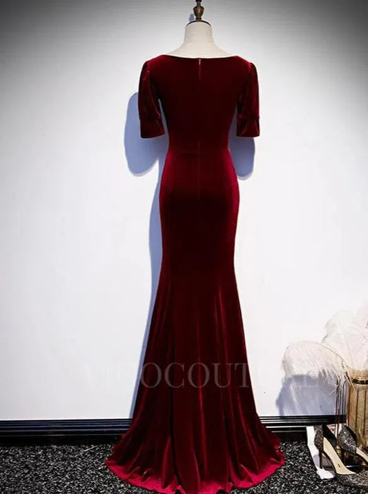 Vestido de fiesta de sirena de terciopelo 2022, escote cuadrado, manga corta