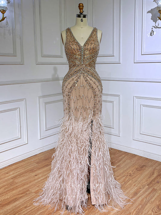 Vestido de fiesta vintage con plumas y cuentas, corte sirena, años 20, vestido de noche 22132