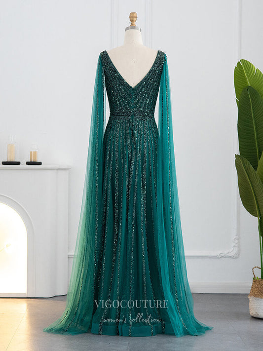 Vestidos de fiesta vintage con cuentas y abertura con capa desmontable, estilo sirena, 22080