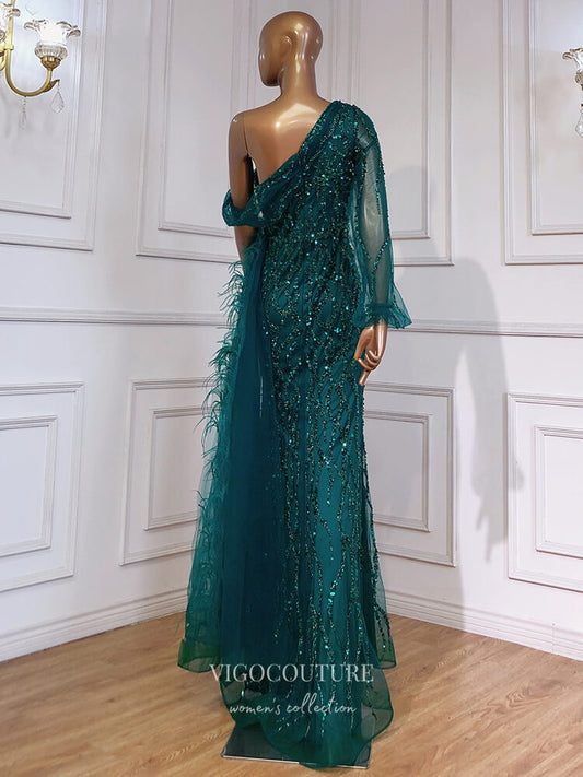Vestidos de fiesta vintage con cuentas y abertura, corte sirena, un hombro, 22072